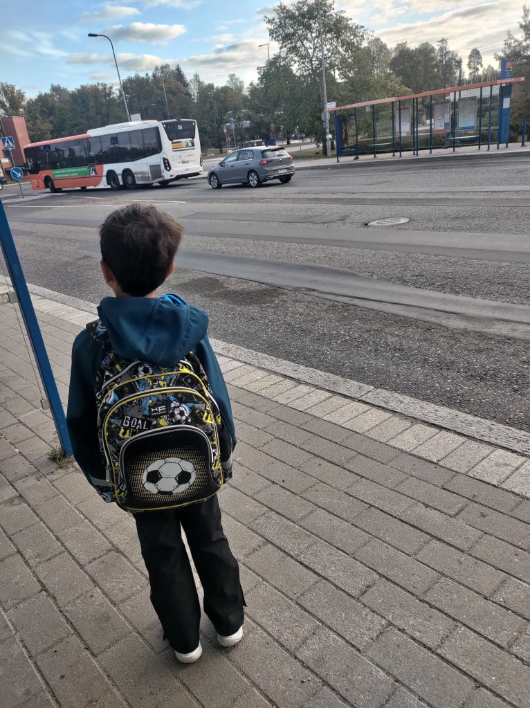 男孩突然跌落出他的異想世界 整身向後倒/擺動的手向後揮舞/彷彿即將墜落地面下一秒鐘/我們四目相對/警戒的雙眼害羞了起來/下眼皮向上彎我還以淺淺的微笑/感覺到嘴唇和酒窩的皮膚在四度的早晨中伸展/在陽光中攤開