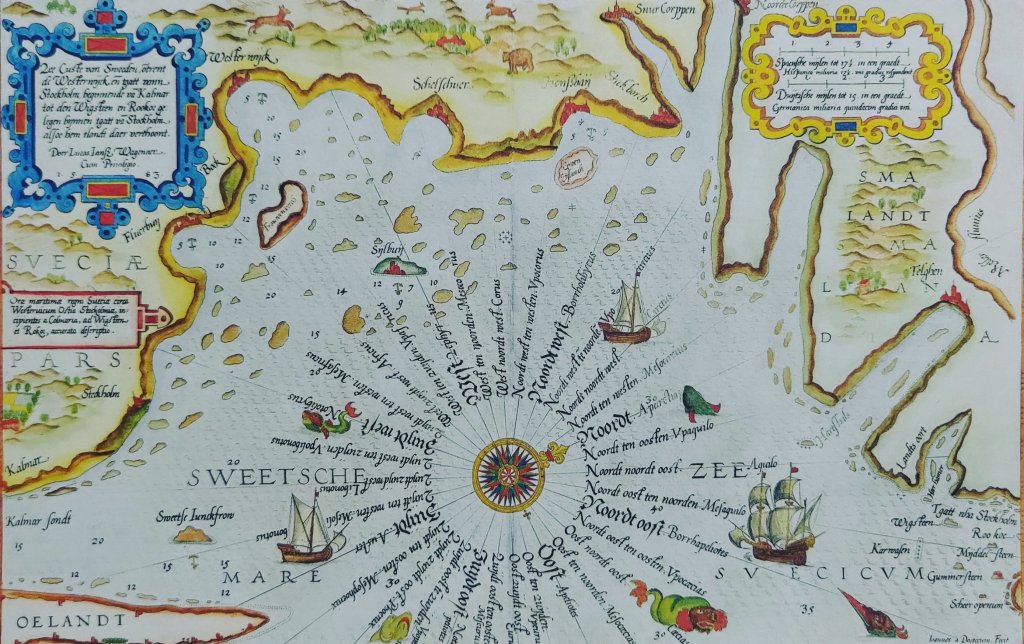 繪圖地點在瑞典西岸斯德哥爾摩以南、厄蘭島分(Öland)以北的海灣及海岸線,是以西方朝上的方式繪製(但略向南傾)。若是和當今地圖比較之後,可以發現作者似乎可以將這段海岸線集中繪製,強調了海岸線的曲折,形塑一個強烈的環繞感及中心性,在波羅的海的一隅。繪圖時期的瑞典王國疆域涵蓋瑞典及芬蘭,包圍了波羅的海的西側及北側。色調區分出了以南北雪萍為交界的兩側大陸、厄蘭島及海洋。